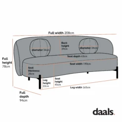 - Size: W 208 x D 94 x H 78 cm. Seat height: 45 cm.