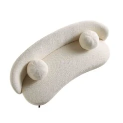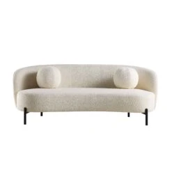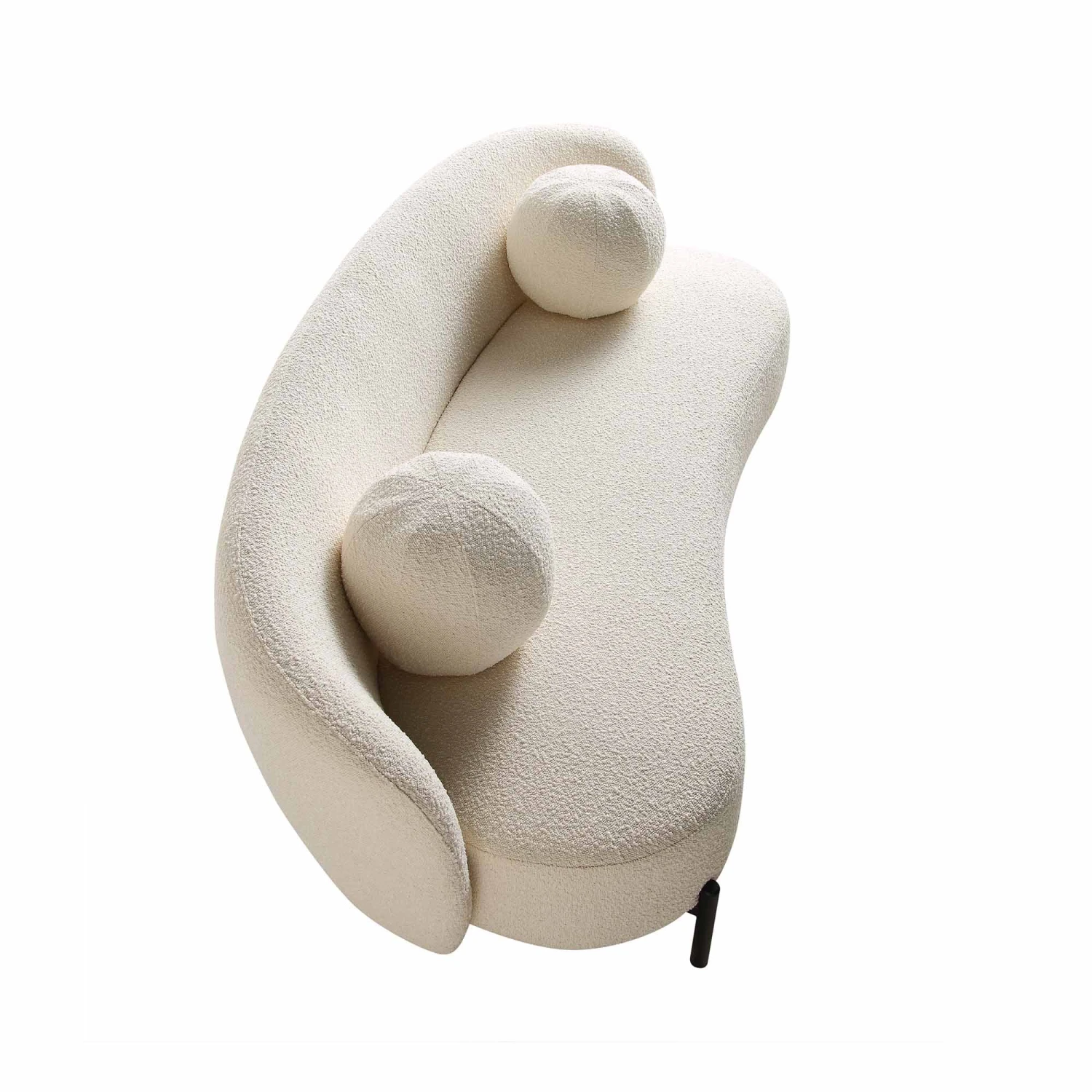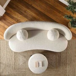 - Complete the look: Pictured with the Amboise Ecru Boucle Curved Sofa is our Amboise Ecru Boucle Round Storage Pouffe.