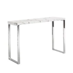 - Our Biasca console table boasts contemporary style with its high gloss table top and silver chrome legs.