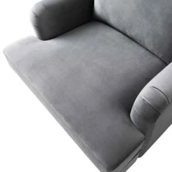 - Crafted from solid wood and metal frame, the cushions are filled with foam and upholstered with soft cosy velvet feel fabric in medium grey colour.